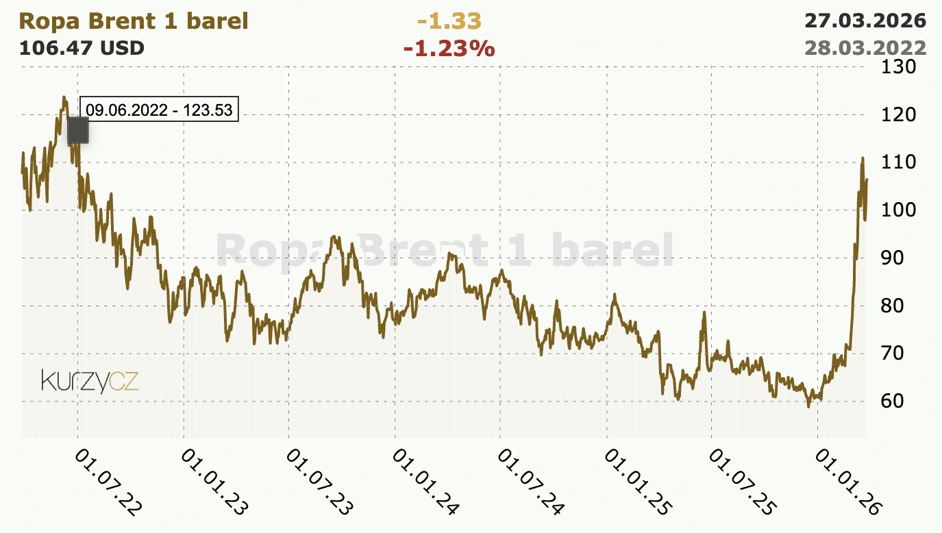 V roce 2022 se cena Brent crude oil vyšplhala až na zhruba 123,50 USD za barel. Přesto ceny pohonných hmot nepřekračovaly hranici 50 Kč za litr.